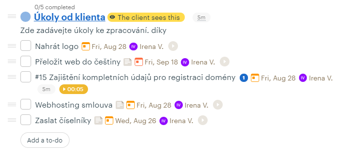 Namísto emailu, kde postupně rozsah obsahu v komunikaci silně narůstá, jsou v BaseCampu (obrázek výše) rozděleny všechny úkoly do podrobností. Ať se to týká výměny loga, změny kontaktní stránky, vytvoření nové reklamní kampaně či čehokoliv dalšího. Můžete si říkat, že kvůli malé úpravičce a novému požadavku nemá smysl lézt do Basecampu a řešit byrokracii. Je to pravda, ale pouze do té doby,než