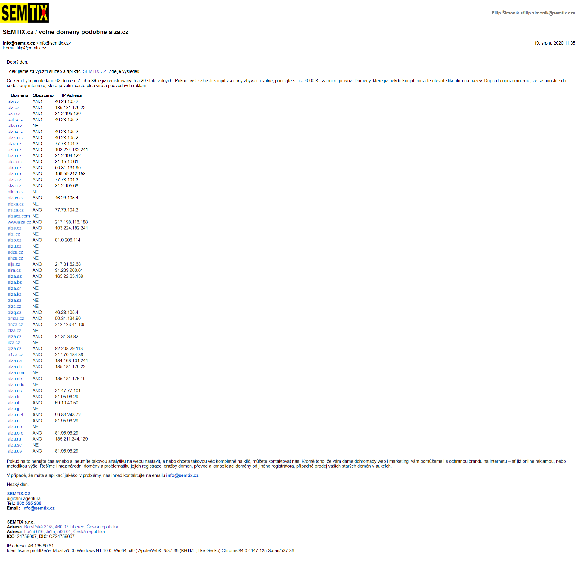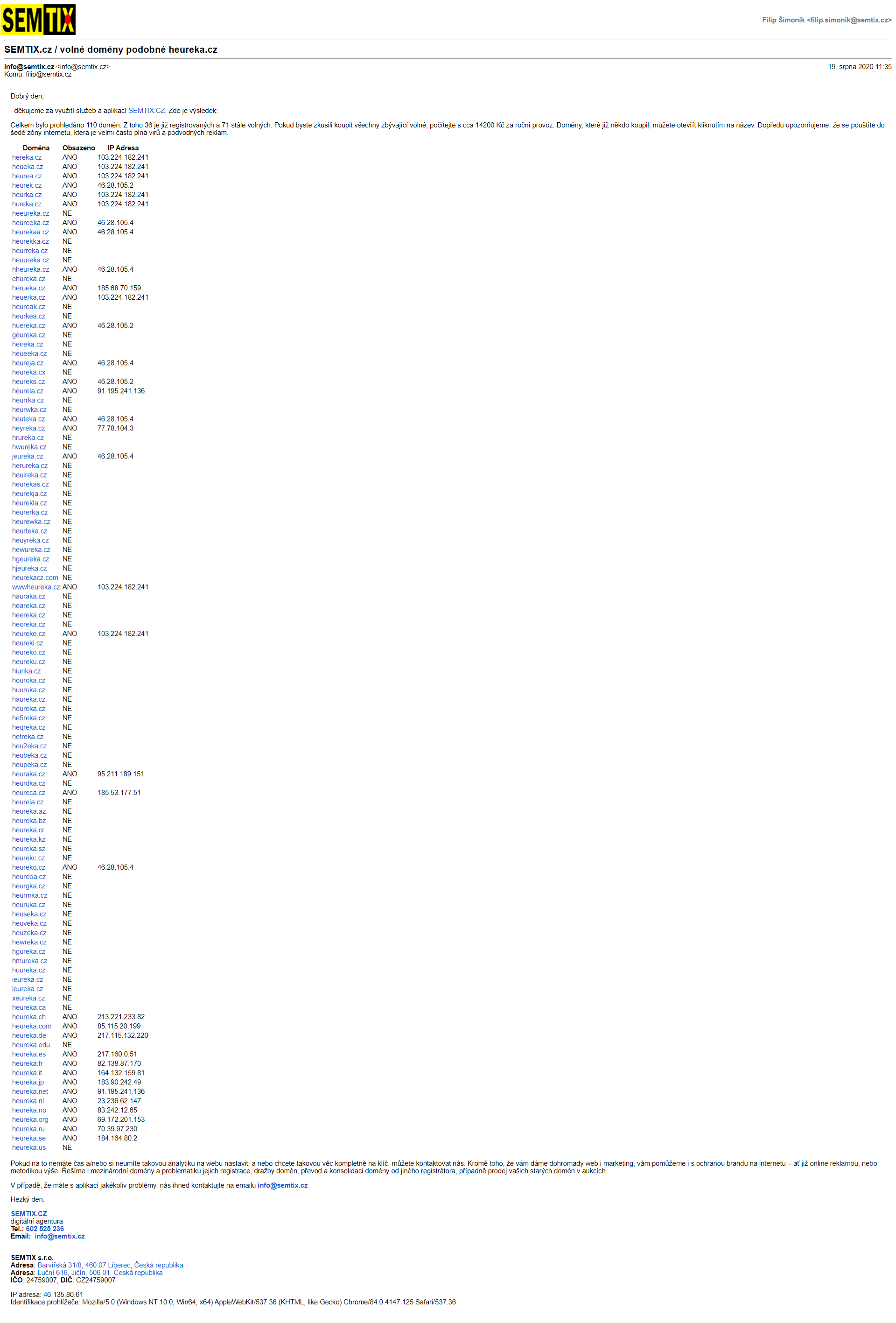 Protože děláme weby, marketing pro firmy a staráme se i o jejich digitální bezpečnost, potkáváme se se spoustou dalších nepříjemných pastí. V oblasti našeho zájmu jsou spíše sofistikovanější podvody, které zacházejí až do oblastí jako sociální inženýrství. V roce 2020 se například staly velkým hitem domény a jejich předražená registrace. Jak to funguje? Je to velmi jednoduché. Například pokud vlastníte doménu seosemtix.semtix.eu, přijde vám email od ,,registrátora“, který vás v přátelsky laděném duchu upozorňuje, že se někdo pokouší koupit doménu, která je té vaší podobná. S náznakem nebo přímými argumenty, proč by měla být vaše. Například semtiks.cz jako fonetická varianta vaší domény. A ve stejně přátelském duchu vám rovnou nabídne, že registraci takové domény zařídí. Jediný háček, který to má, je cena. Zatímco běžná cena roční registrace CZ domény je kolem 200 Kč, firma vám nabízí registraci prodlouženou rovnou na 10 let za cenu okolo 10.000 Kč. Tedy cca 5-násobnou cenu, než když si doménu koupíte sami. Otázkou navíc zůstává, zda můžete u takové firmy věřit, že pro vás doménu skutečně koupí a pokud ano, tak zda budete uvedeni jako majitel domény vy, nebo dotyčná firma (která vás pak může na konci opět vydírat). Více se o tom psalo (včetně právní roviny) na podnikatel.cz.
