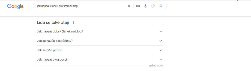 Je možné provést přímo ve vyhledávačích. Například u výsledků Google si na hledanou frázi projdete výsledky vyhledávání a uvidíte množství podobných relevantních frází. Google nabízí i dva zajímavé bloky obsahující KW: