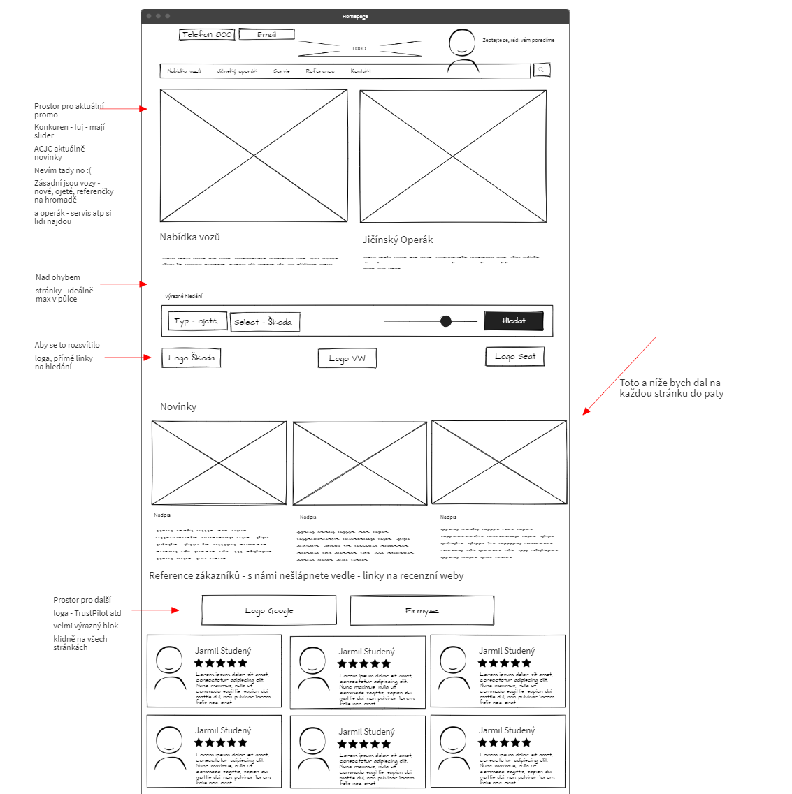 Důkladně jsme se seznámili s výsledky výzkumu. Po přečtení odpovědí na cca 30 stránkách hutného textu jsme si začali stavět konstrukci informační architektury. Dali jsme se do kreslení skic, měřili jsme průchodnost a výkon frází které jsme chtěli použít a načrtli jsme jak by mohly vypadat hlavní stránky webu. Bylo nutné stránky logicky uspořádat tak, aby vyhovovaly většině, a zároveň neodradily ten zbytek.