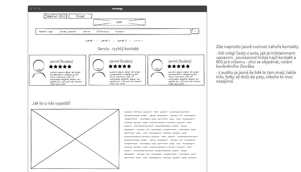Když si s grafikem projdeme několika kolečky připomínek, nápadů a subjektivních vnuknutí, logicky by měl z výsledku diskuze vypadnout finální design a kodér vyrobit web. Velký omyl! Všimněte si na designech výše jedné důležité „drobnosti“. Každý návrh má jinak pozicované a jinak funkční hlavní menu. Rozhodně doporučujeme kvůli případným pozdějším nejasnostem rozkreslit menu i s popisem funkčnosti. Další důležitou drobností, kterou každý bere jako samozřejmost, je velikost nadpisů a textů – pro všechny 3 příchozí uživatelské cesty (desktop, tablet, mobil) by měly být jasně vyspecifikovány velikosti písma. Naprosto zásadní jsou animace prvků po najetí, nebo chování odkazů na stránce, pokud na ně najedete myší. Kdo někdy držel v ruce profesionální logotyp, který jasně definuje povolené a zakázané případy použití loga, ví přesně, o čem nyní píšu.