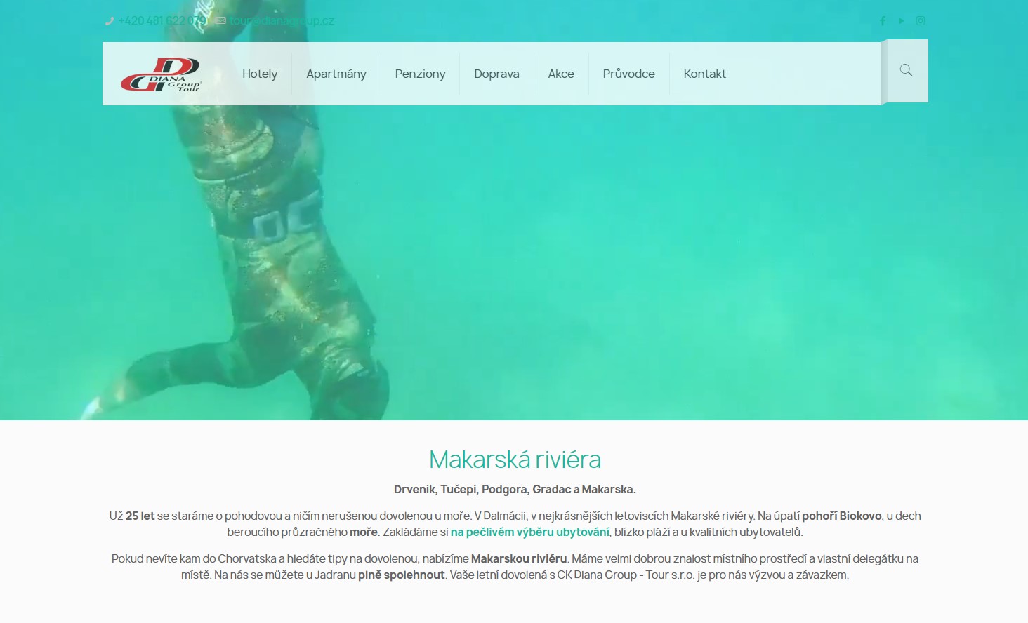Výsledný web cestovní kanceláře po sérii ,,drobných“ úprav. Z původní šablony zbylo jen hlavní menu…