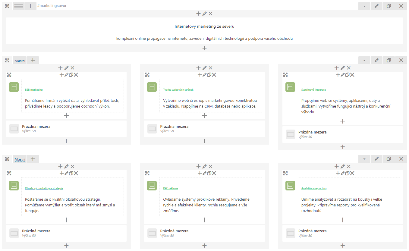 Třeba takto vypadá editace hlavní stránky Semtix.cz