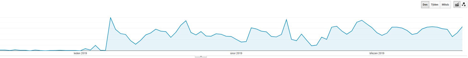 Chcete mimo poptávek ještě jiný důvod, proč byste měli uvažovat o internetovém marketingu? Schválně si spočítejte kolik času, peněz a energie vás stálo vytvoření webových stránek. Komunikace, výběr firmy pro vytvoření stránek, tvorba textů, fotky, vytvoření mailu a spoustu dalších věcí. Webové stránky se ale samy od sebe neumějí propagovat. O vašem novém webu se bude chvilku mluvit mezi známými hned po vytvoření, ale to pomine. Jak říká můj kolega: „Hezký web bez propagace je užitečný asi tak jako vizitka v kapse!“  Jen stěží o vás bude někdo hlasitě mluvit, a na váš hezký, nový web bude jen stěží někdo chodit. Musí se tomu pomoci. Jaký je rozdíl, pokud internetový marketing zapojíte či ne, si můžete všimnout na křivce návštěvnosti paní Evy (absence internetového marketingu do ledna 2019):