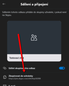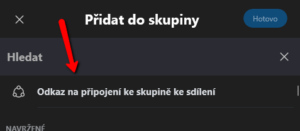 Klikne na ,,Odkaz na připojení ke skupině ke sdílení”